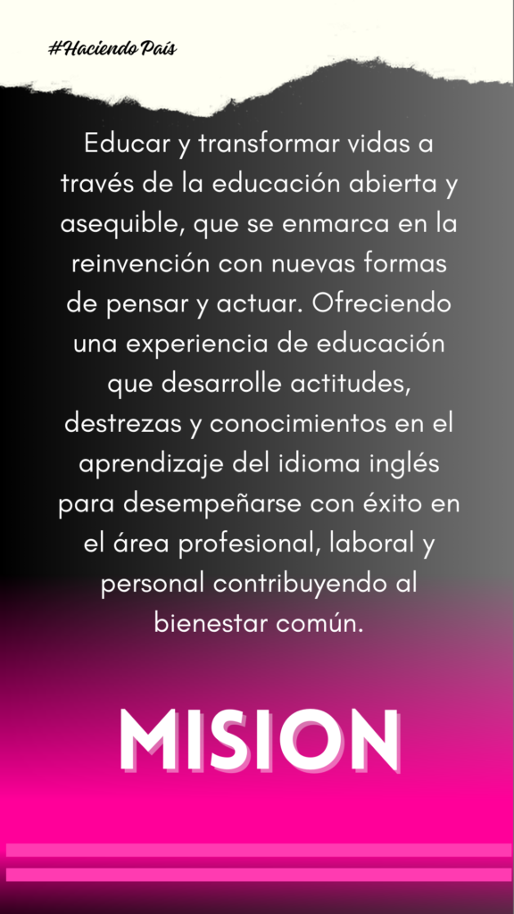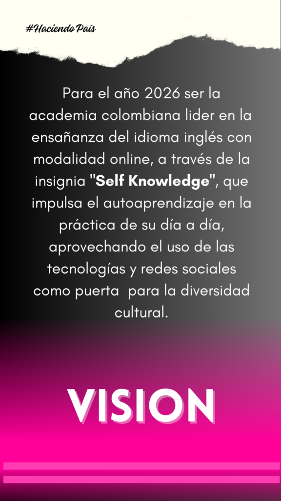 Nuestra filosofía es Hacer País, donde las personas de cualquier estrato social cuenten con la posibilidad de capacitarse en el idioma desde su comodidad, contando con 4 aspectos importantes: